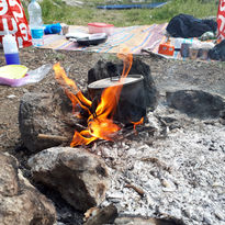 הגענו לעין קובי ביום חמישי בשעה 16:00, ישנתי שנ"צ קצר מתחת לעצים, והתחלנו בלקושש עצים ולהכין ארוחה משותפת.